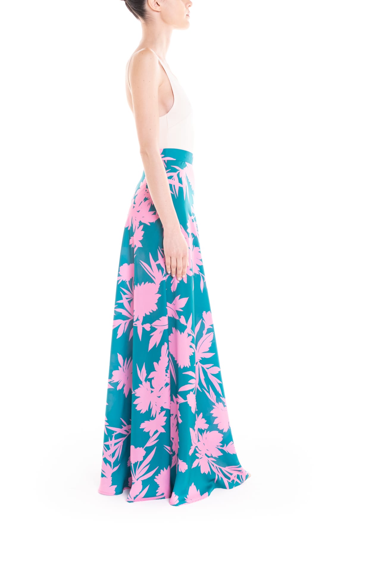 Gonna lunga a ruota in tessuto leggero dona una nota vibrante alla Primavera Estate Poupine, con una nuova stampa floreale viva, intrigante, bella, da amare e indossare per sempre.