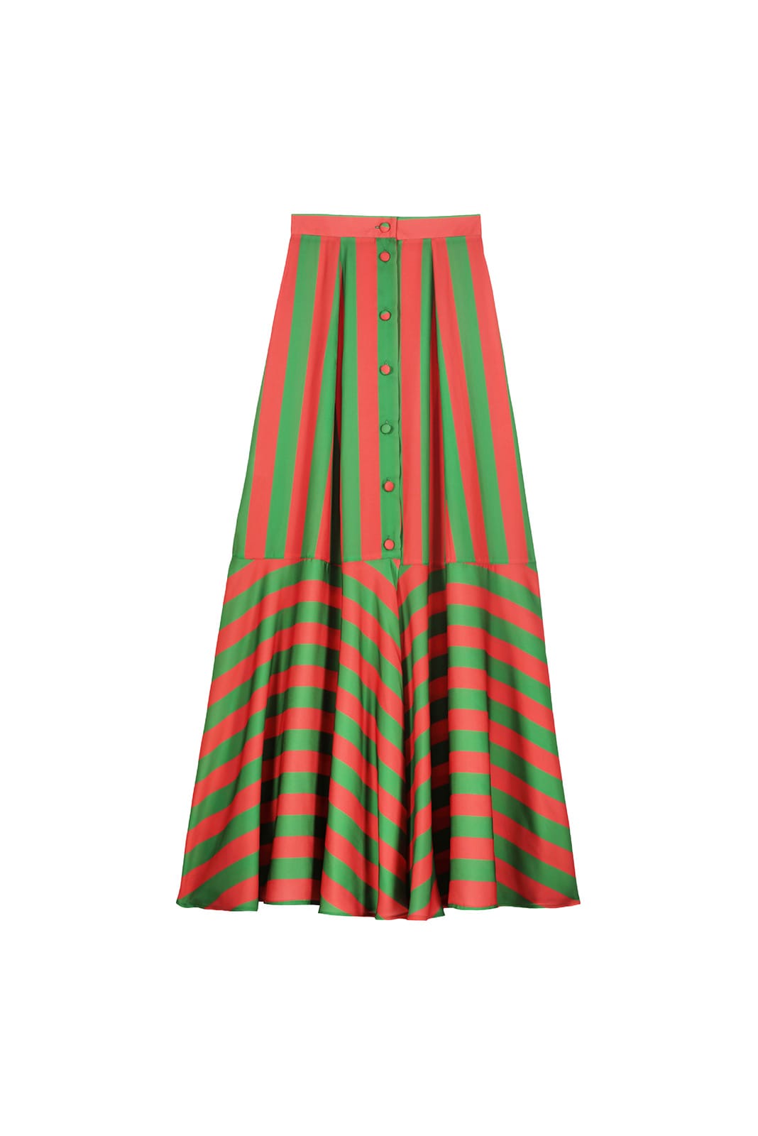 Maxi gonna con silhouette a trapezio, dal carattere brioso, animata dalla stampa a righe a contrasto che donano movimento al capo.