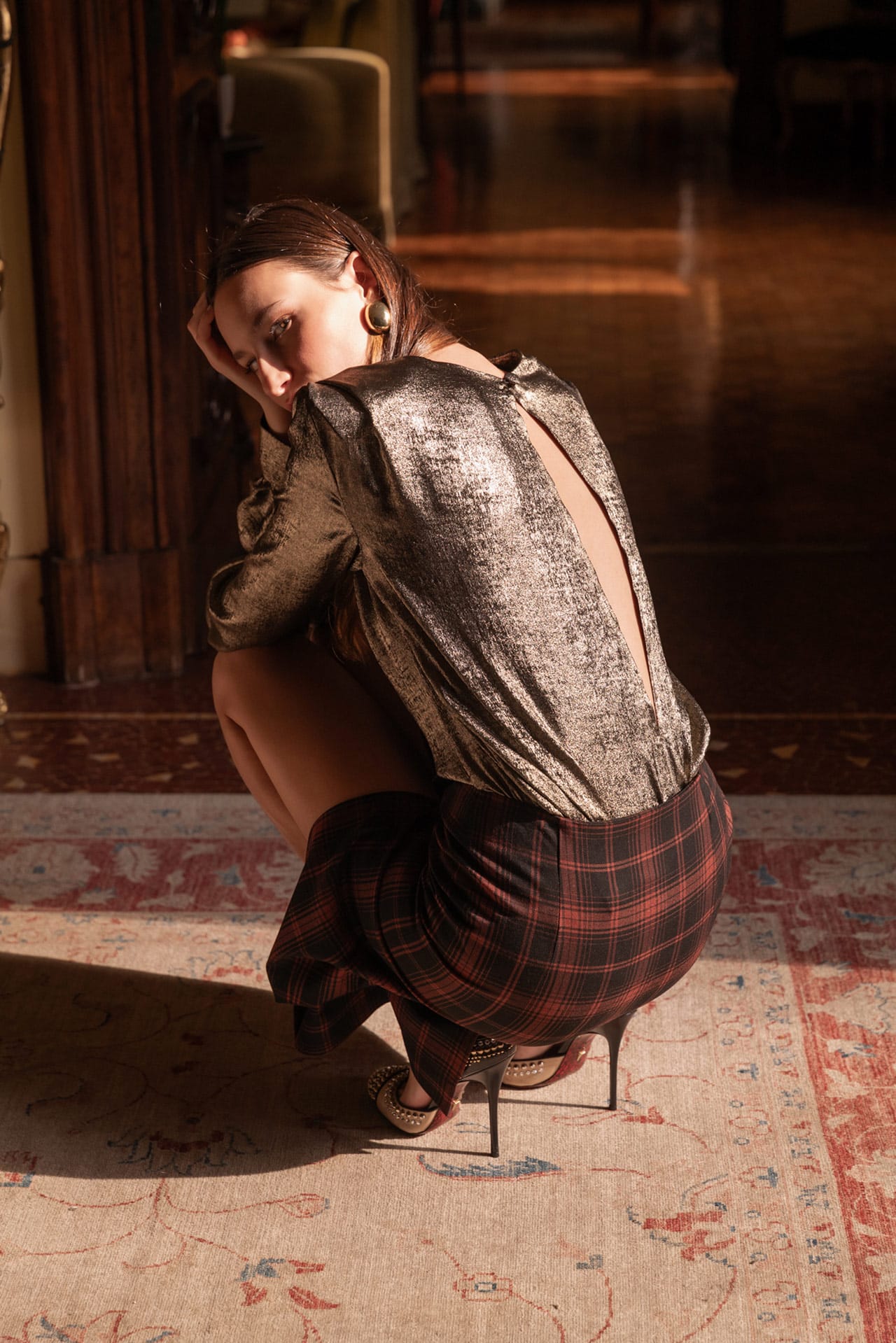 Aggiungi un tocco di glamour al tuo look con il top in lamé argento e oro firmato Poupine, un capo elegante e sofisticato perfetto per serate speciali ed eventi chic. Realizzato in tessuto metallizzato dall’effetto brillante, cattura la luce ad ogni movimento, regalando un finish luminoso e moderno. Il design presenta spalle strutturate e maniche lunghe con polsini abbottonati, mentre la profonda apertura sulla schiena dona sensualità e carattere. Ideale da abbinare a pantaloni palazzo, gonne eleganti o jeans per un outfit versatile e ricercato.