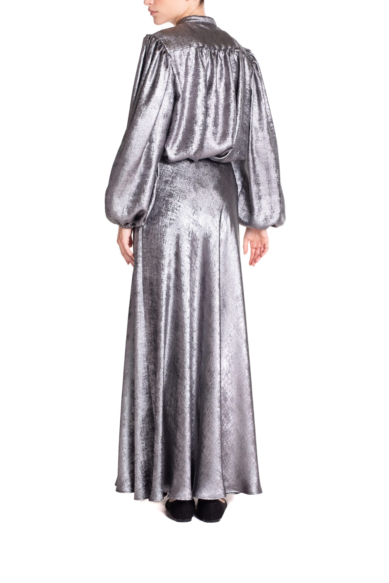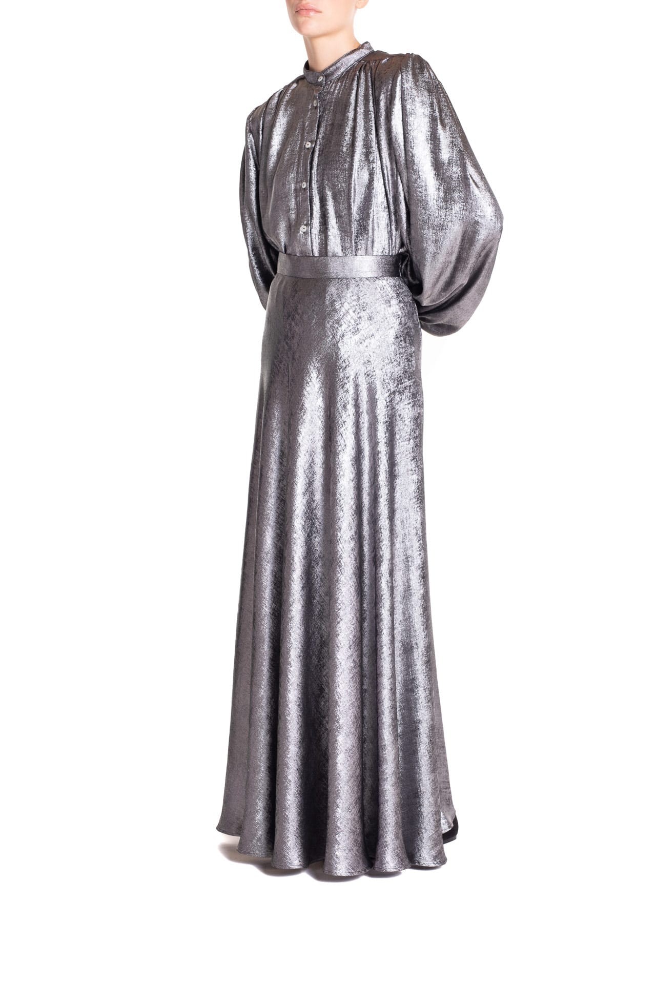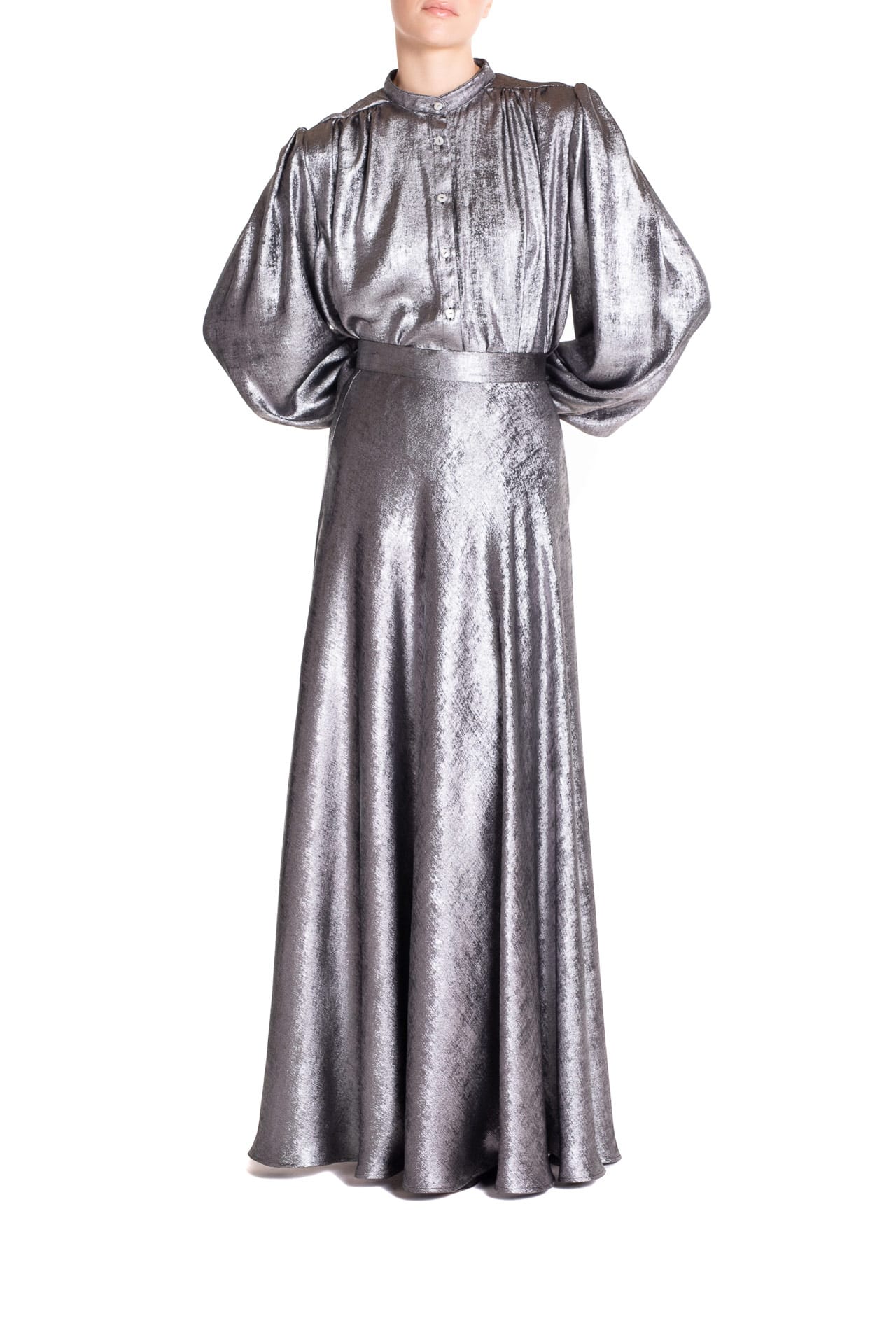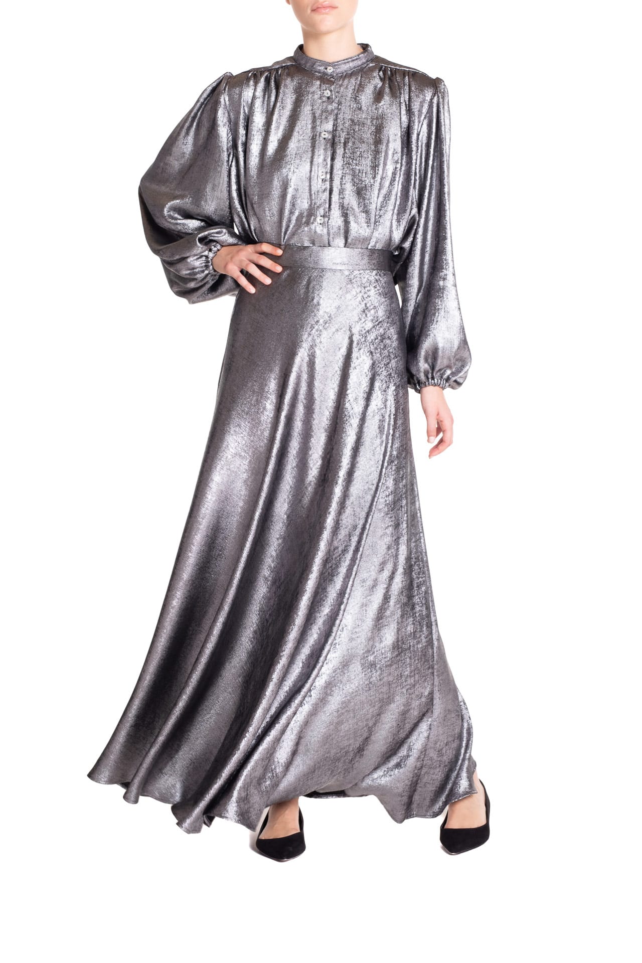 Un capo elegante e luminoso, perfetto per chi ama distinguersi con stile. Questa camicia in lamé oro e argento è realizzata in tessuto metallizzato dall’effetto brillante, che cattura la luce e dona un tocco glamour e sofisticato. Il design presenta un colletto alla coreana alto e stretto, che conferisce un aspetto raffinato, e maniche ampie e voluminose con arricciatura sulle spalle per un effetto drappeggiato e dinamico.