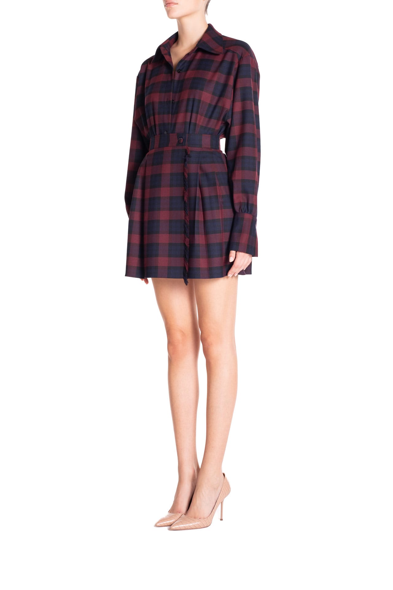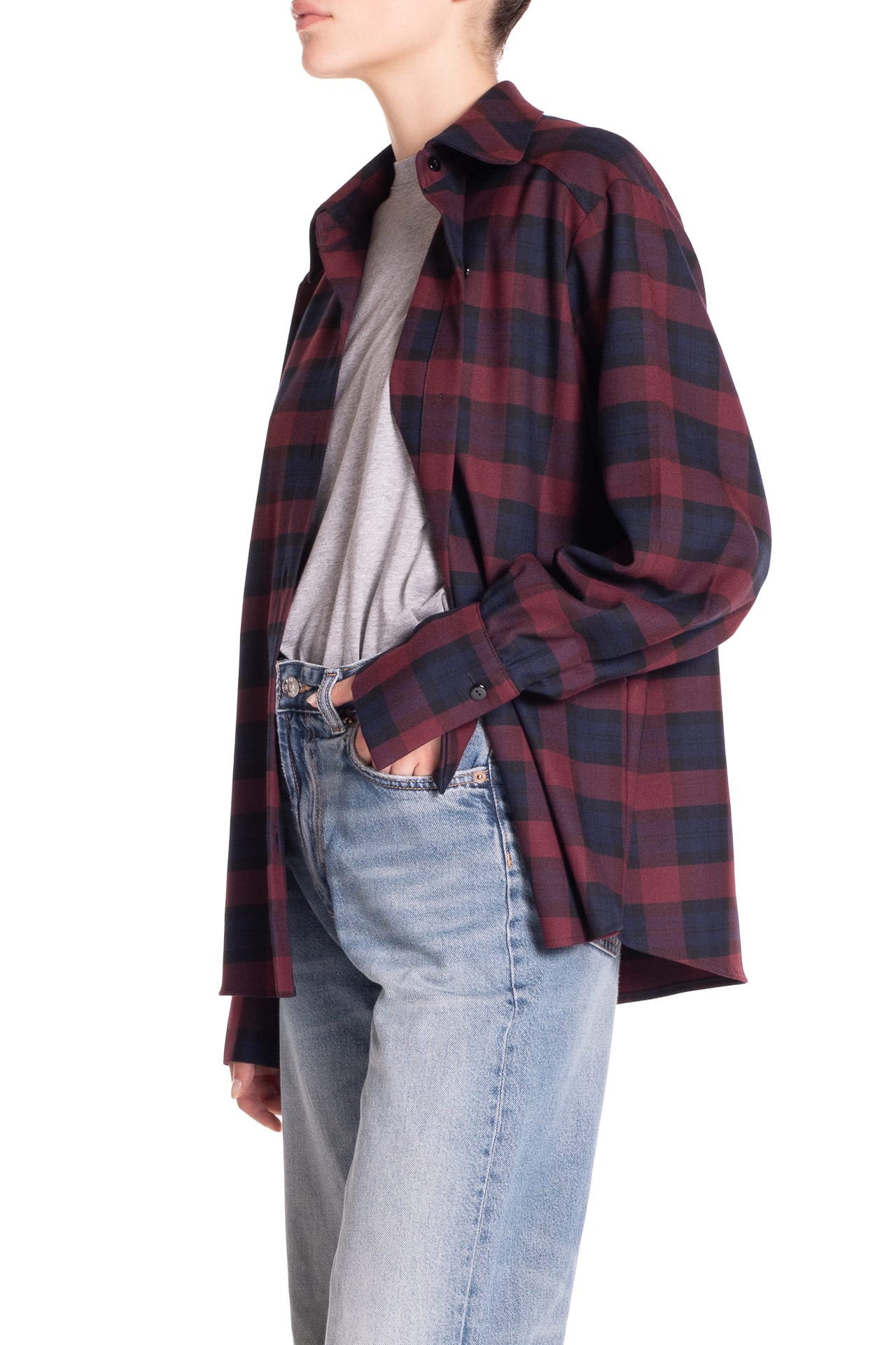 Una nuova camicia sartoriale oversize con abbottonatura frontale, realizzata in tessuto tartan di alta qualità.