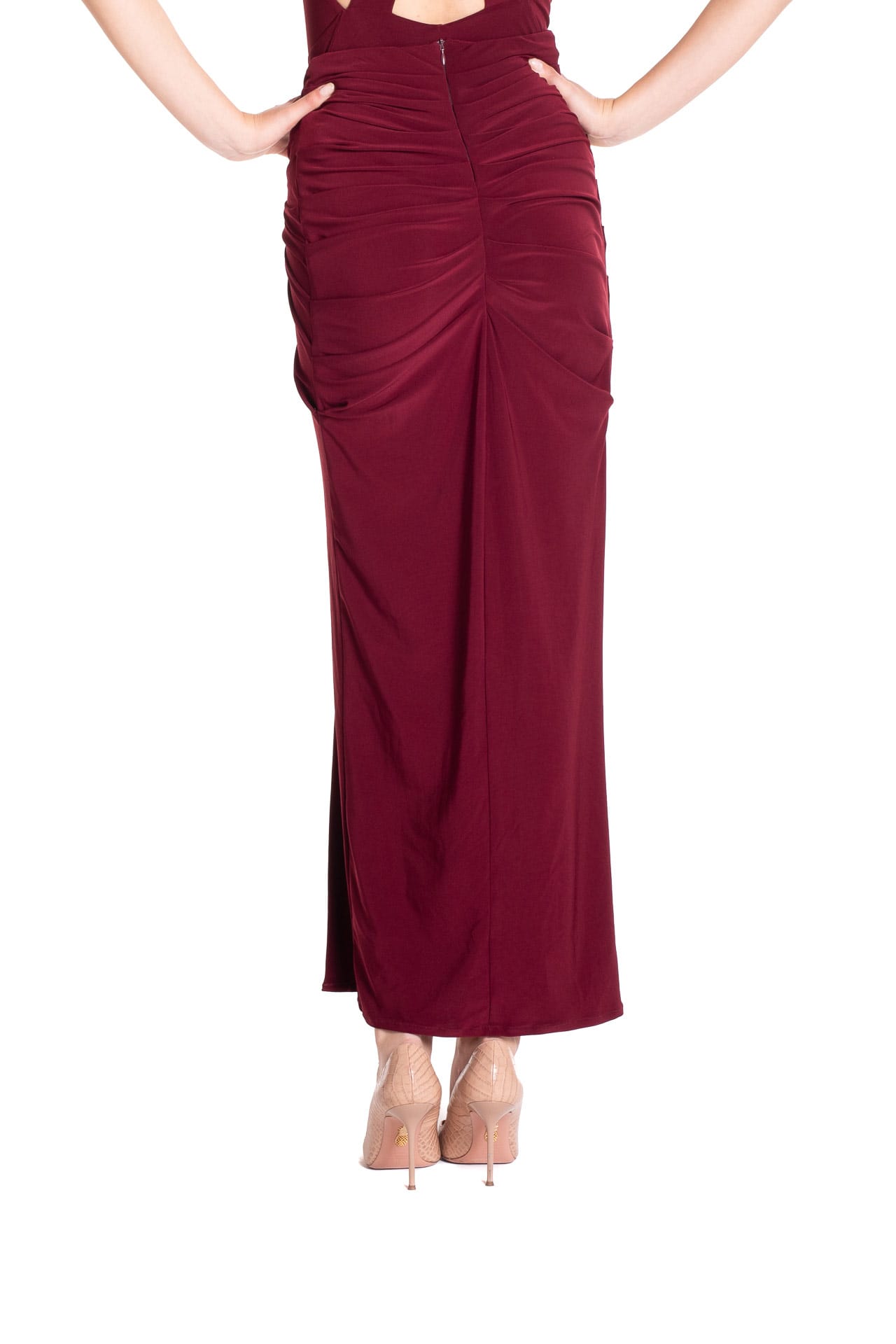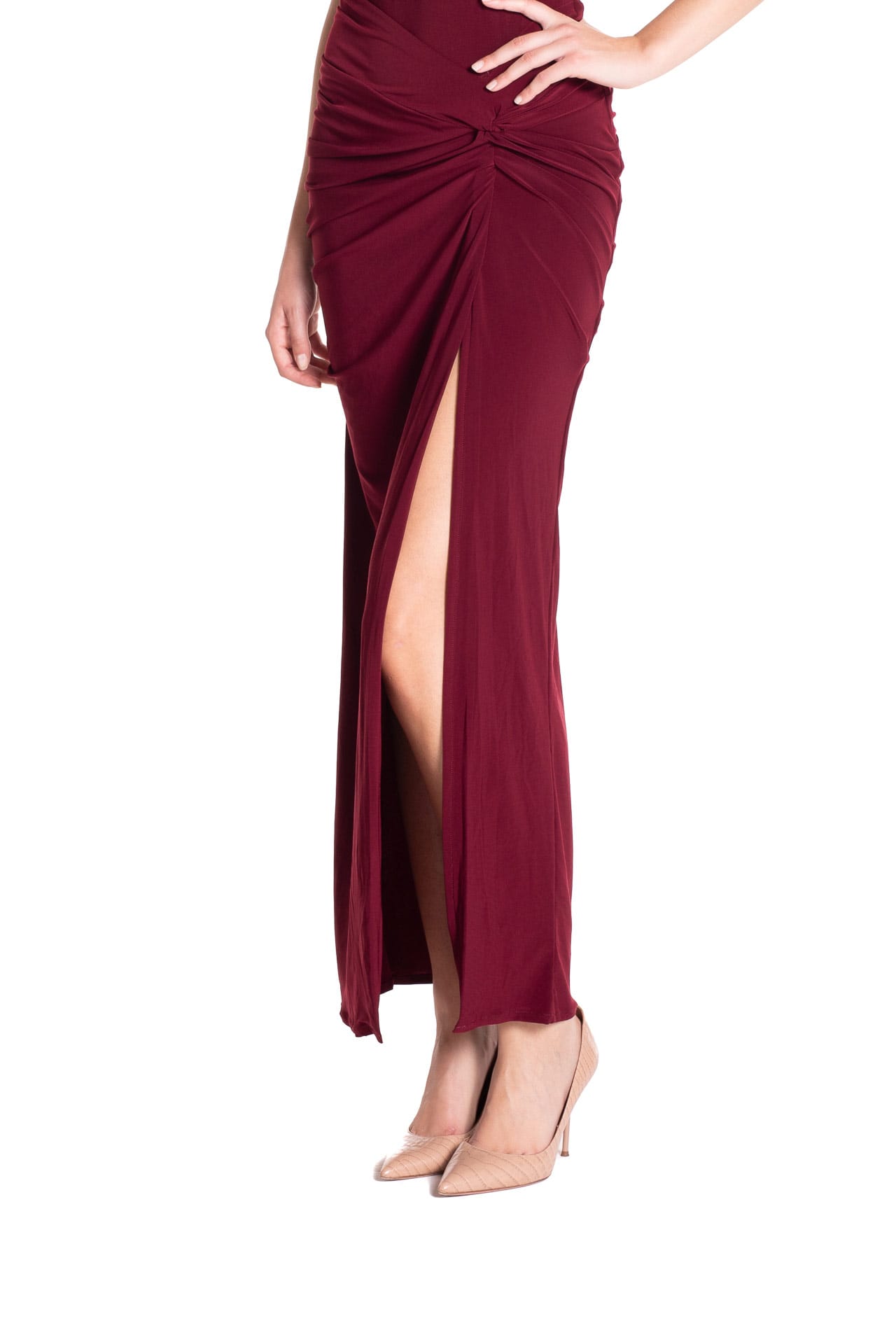 Scopri la raffinatezza della gonna lunga in jersey burgundy, un capo essenziale per la stagione autunno/inverno firmato Poupine.