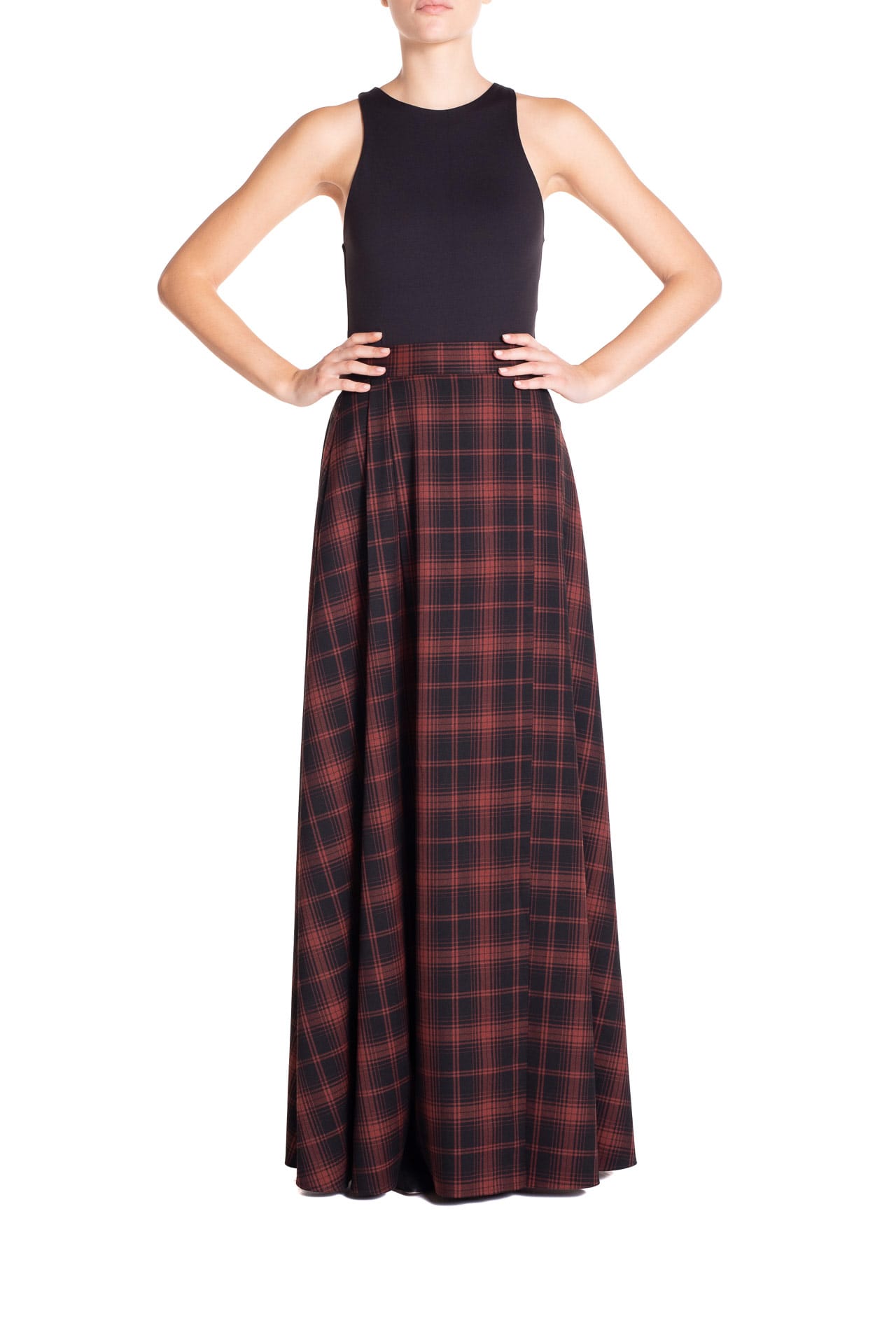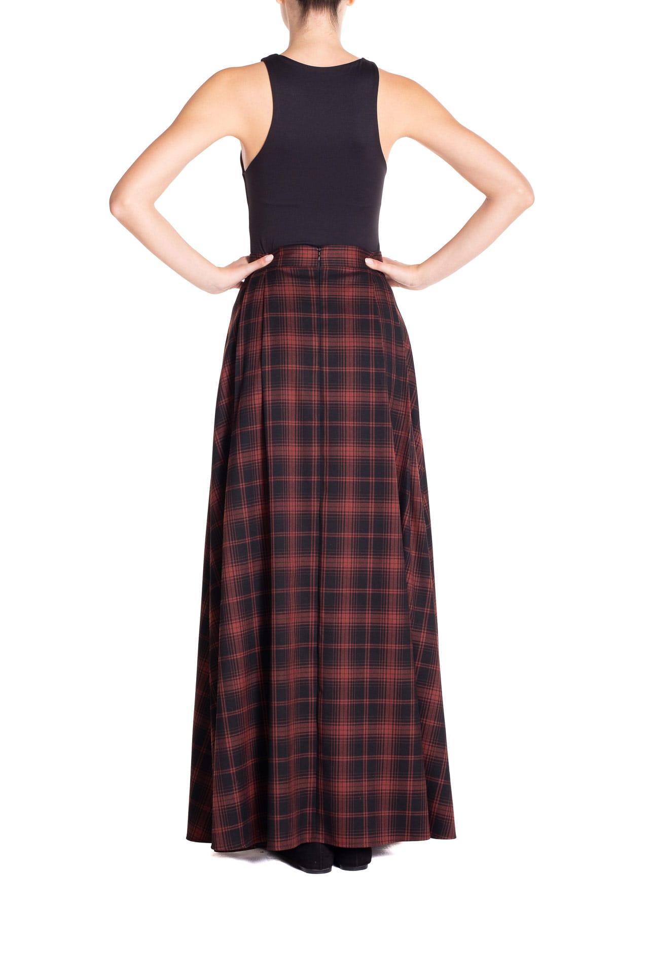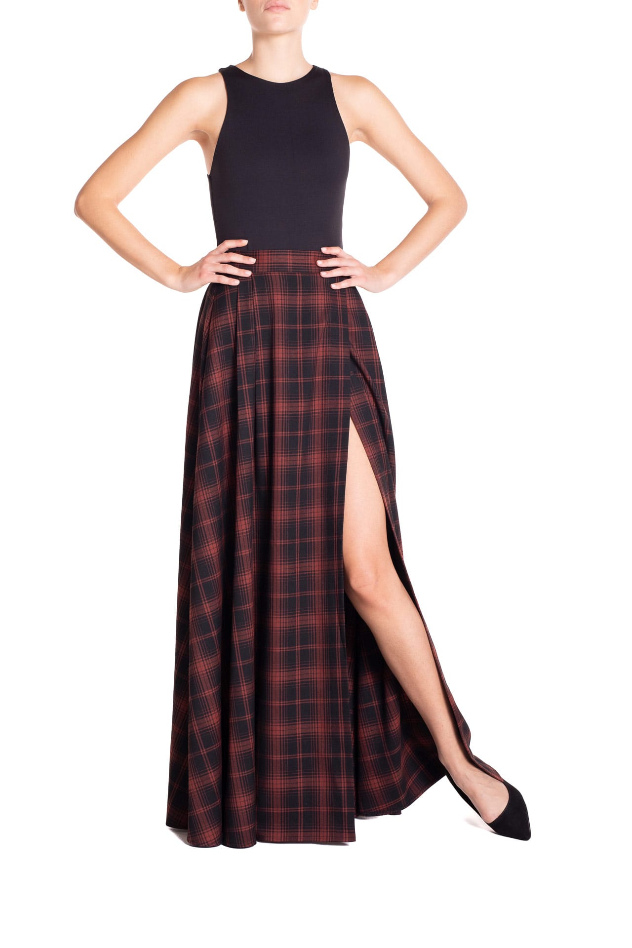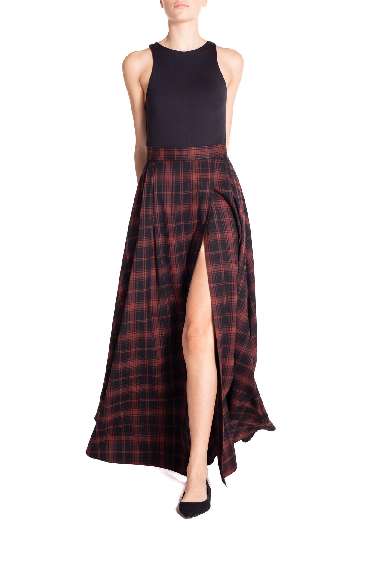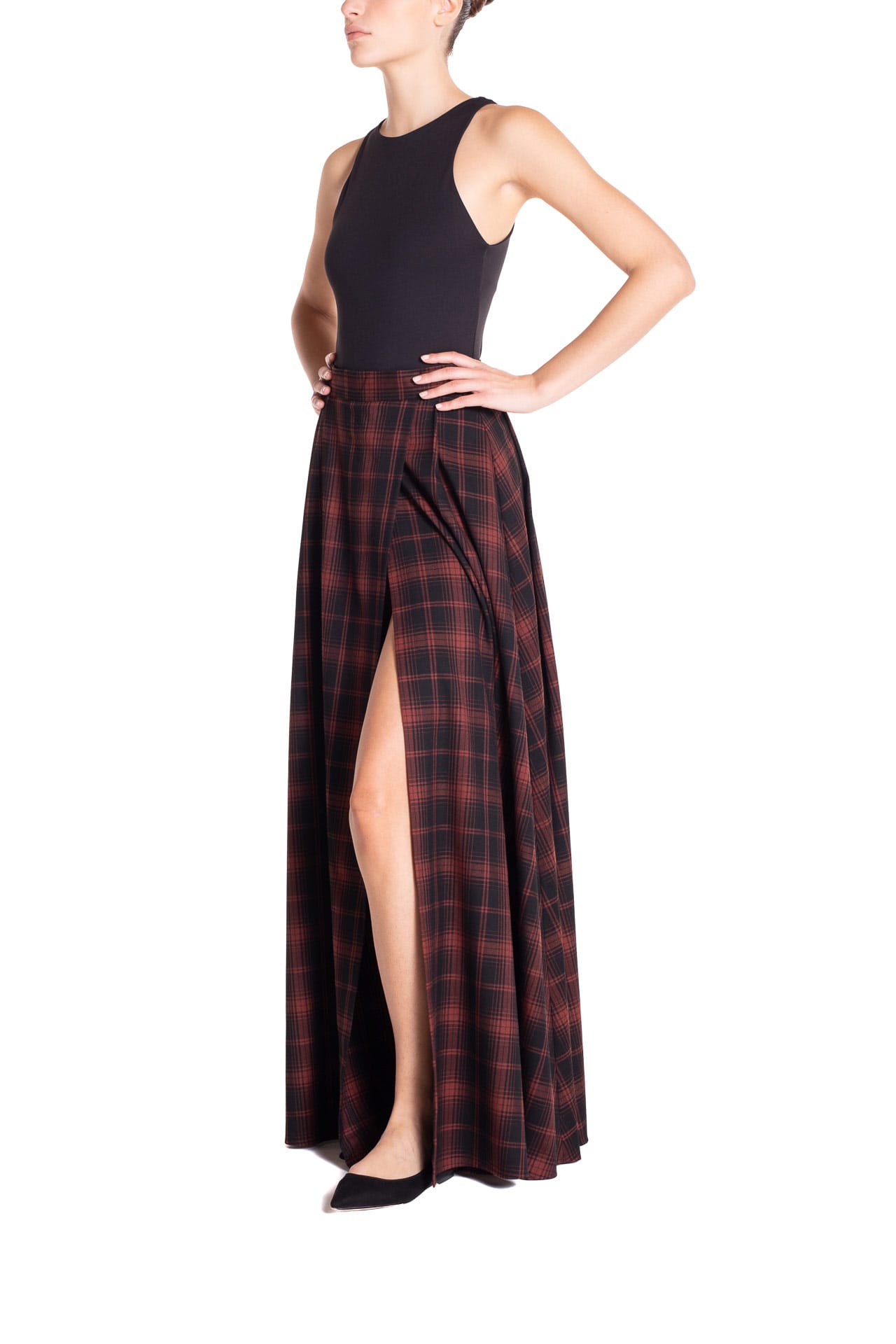 Gonna ruota maxi con spacco Tartan Nero e Marrone