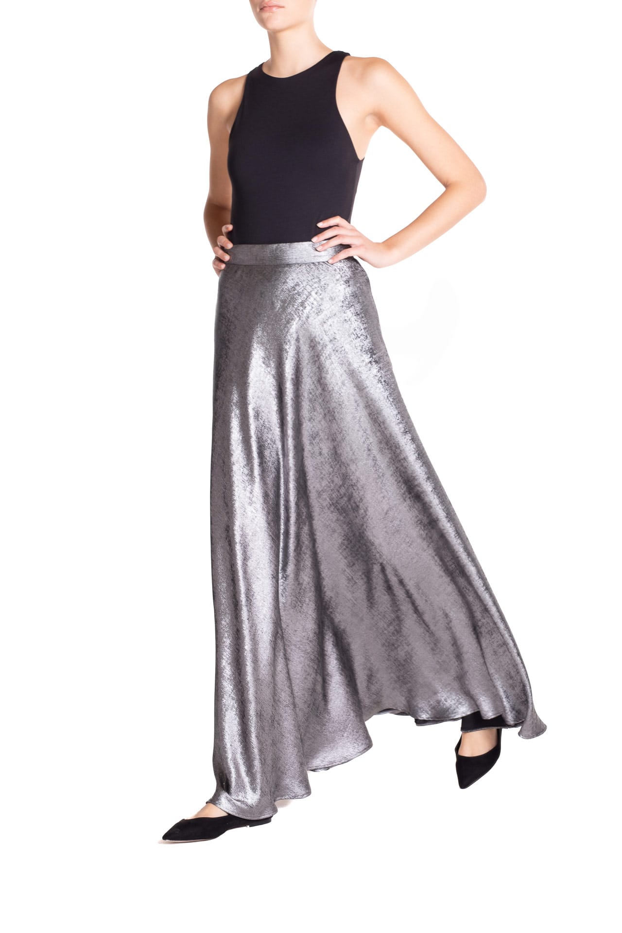 Realizzata in tessuto lamé fluido e brillante, questa gonna dona movimento e luce ad ogni passo, perfetta per serate eleganti, eventi speciali o occasioni in cui vuoi distinguerti con stile.