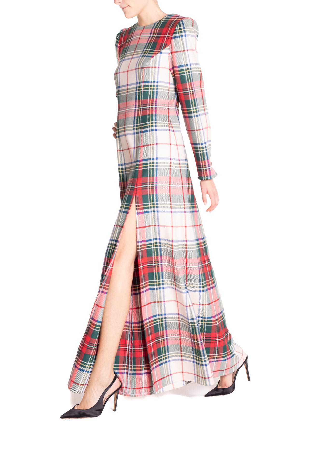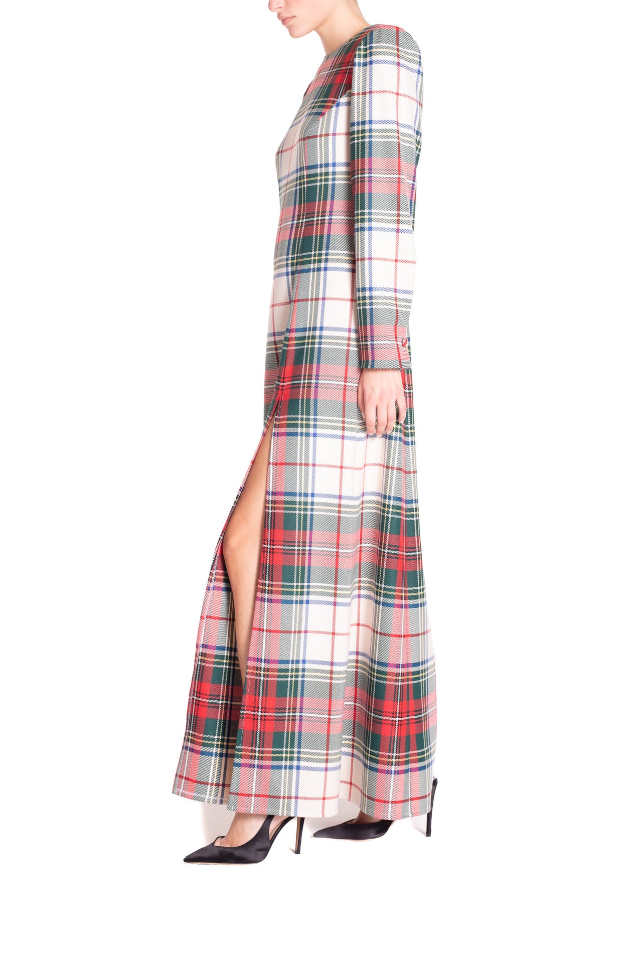 Un nuovo vestito lungo sartoriale in tessuto scozzese di alta qualità, pensato per chi ama distinguersi con stile.