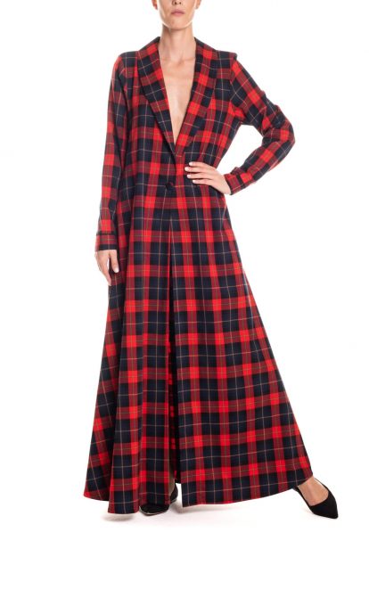 Soprabito lungo con manica lunga tartan – rosso e blu
